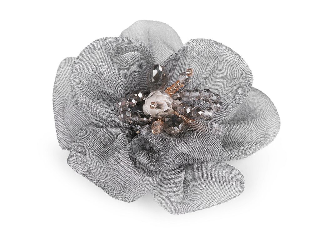 Květ s broušenými skleněnými korálky k našití a nalepení Ø6-7 cm