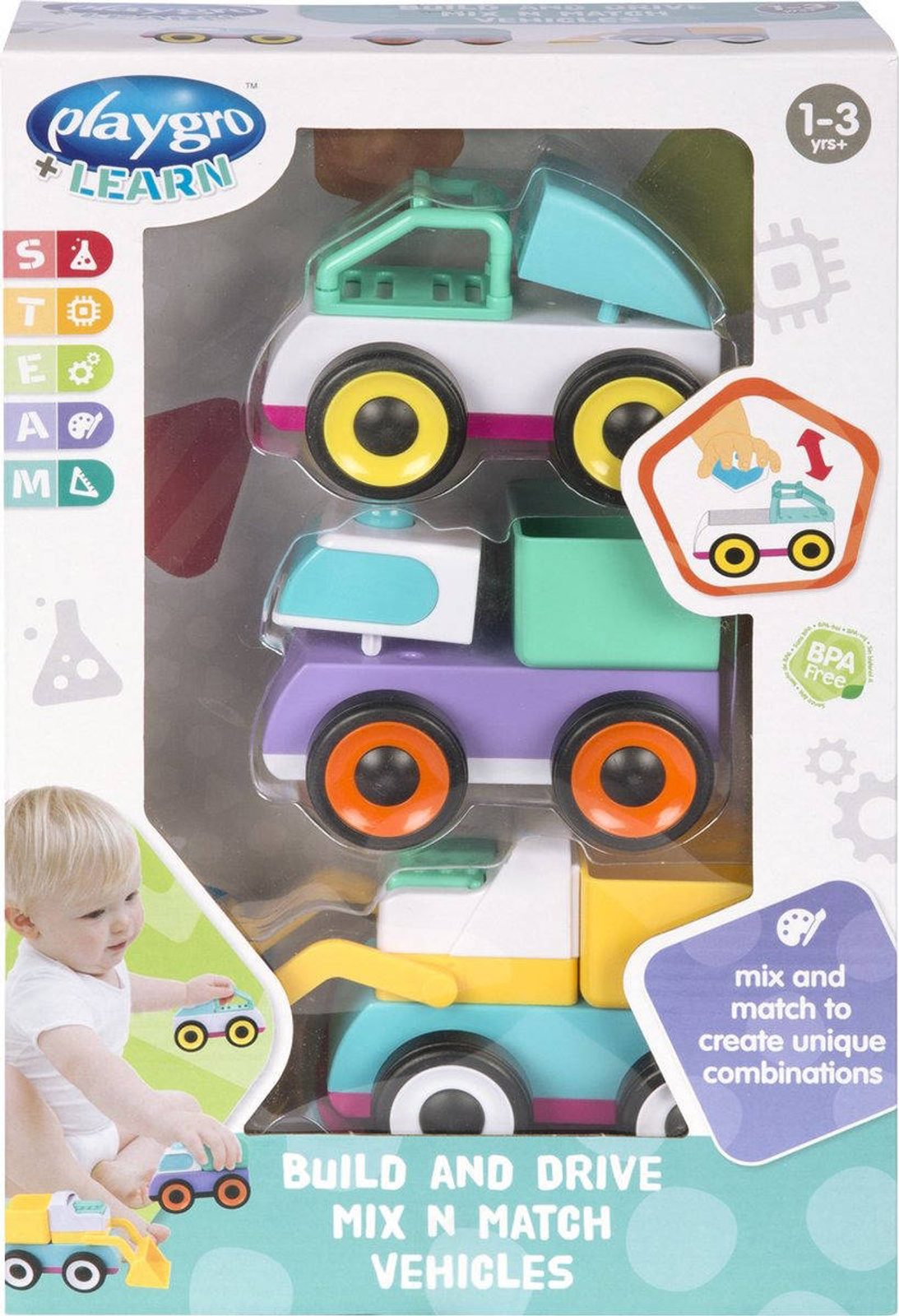 PLAYGRO Autíčka skládací set 3ks baby skládačka plast v krabici