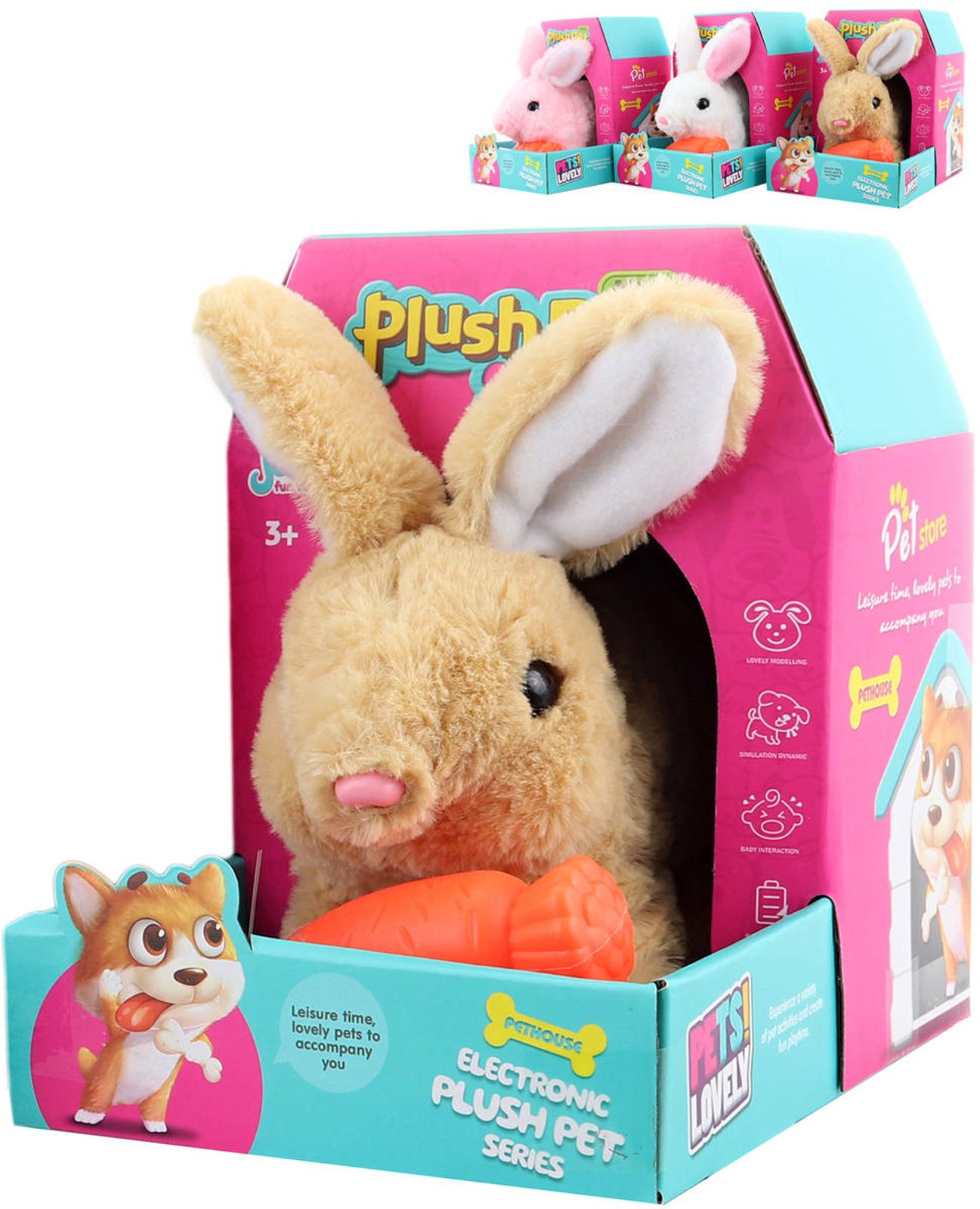 PLYŠ Králík zvířátko chodící set s mrkvičkou na baterie Zvuk 3 barvy