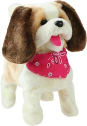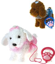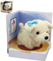 Pejsek chodící o velikosti cca 16 x 18 x 9 cm. Pejsek chodí, štěká a pohybuje hlavou.