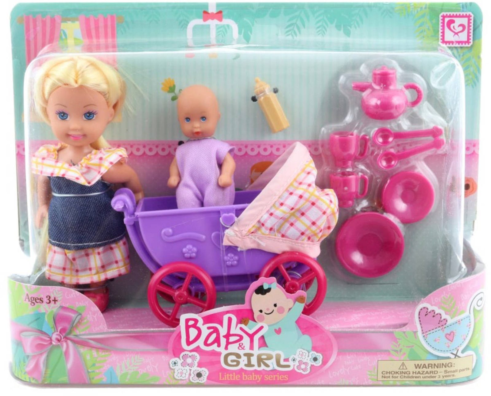 Panenka herní set s kočárkem a miminkem s doplňky plast