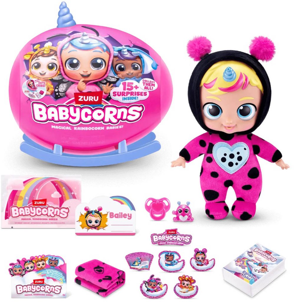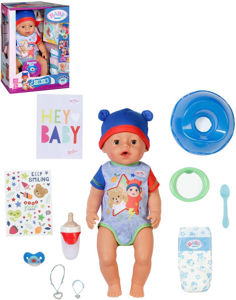 Panenka miminko 22cm pevné tělo plast s doplňky v krabici 30x24x8cm