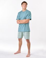 Pánské pyžamo volného střihu z jemného úpletu Vám poskytne pohodlí během spánku. Krátké kalhoty s oblíbeným vzorem káro doplňuje triko s krátkými rukávy.. Kolekce: Pyžama 2025