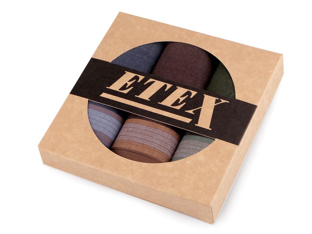 V krabičce najdete 3 čtvercové kapesníky.
