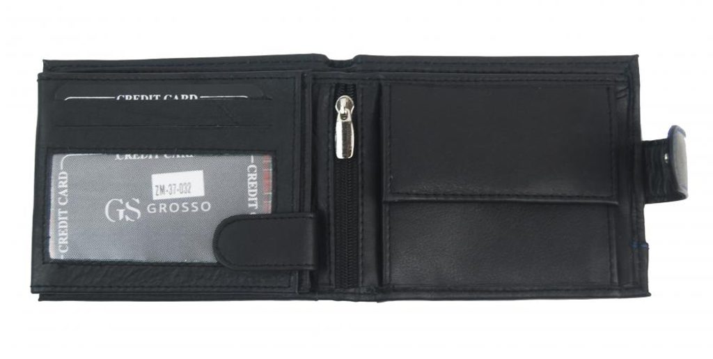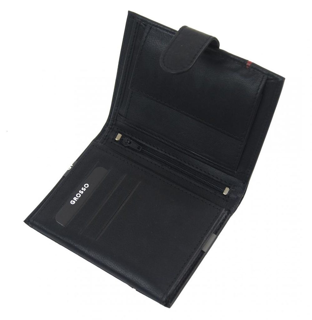 Kožená černá pánská peněženka se zápinkou a červenou nití v krabičce GROSSO
