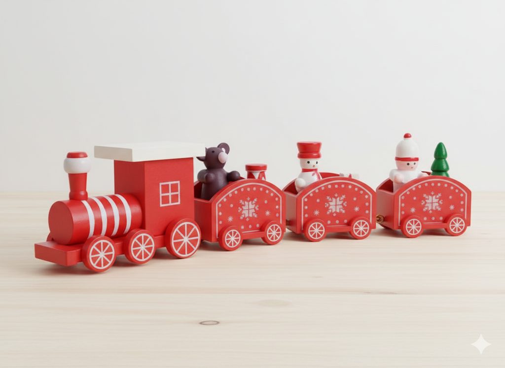 Vánoční vláček s postavičkami - červená/bílá