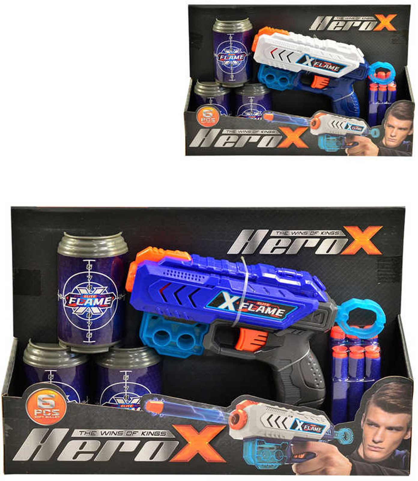 Pistole Hero-X se 6 soft pěnovými náboji s přísavkou a 3 terči 2 barvy