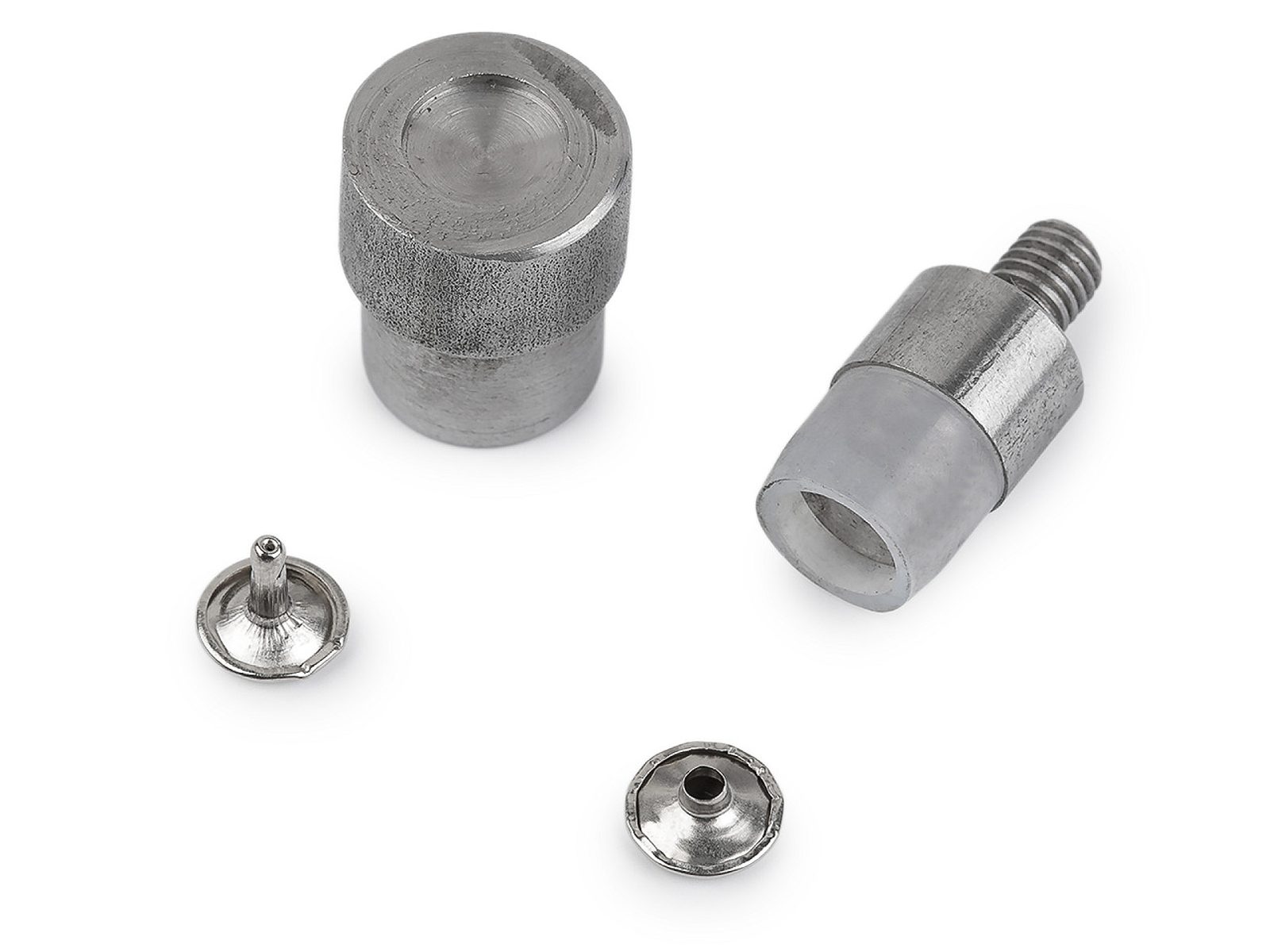 Piston využijete k nýtování oboustranných dutých nýtů Ø12 mm. Skládá se ze dvou částí. Větší část pistonu, do které se vkládá nýt, umístíme v dolní části lisu. Druhou část zašroubujeme do lisu a vložíme vhodný komponent k nýtování.