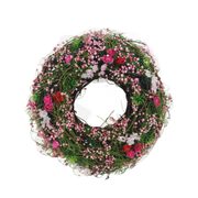 Plastový věnec s květy 33 cm - růžová
