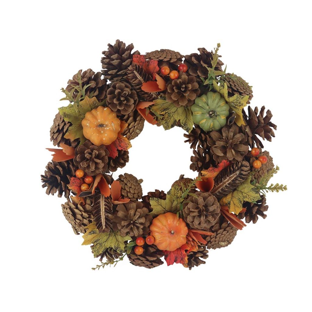 Podzimní věnec P2291 - 34 × 34 × 8 cm ▶