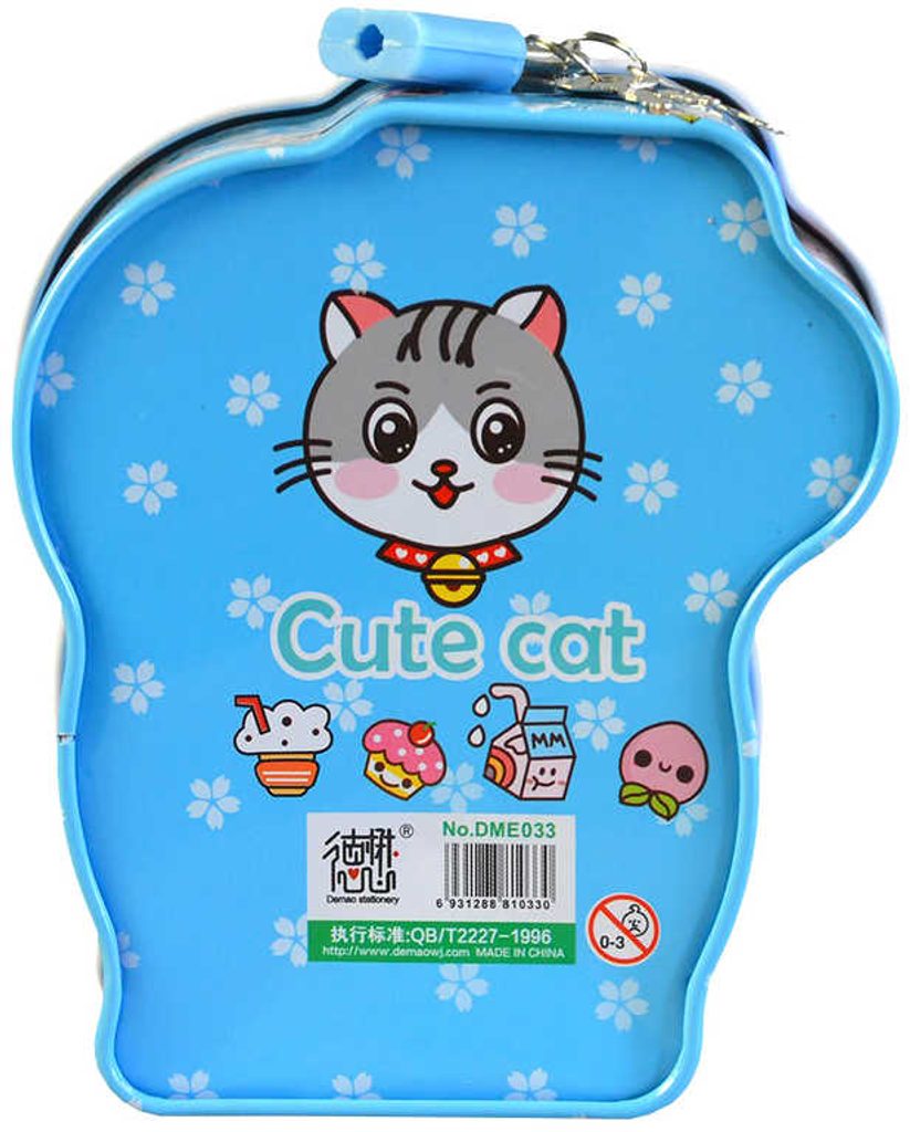 Pokladnička dětská kočička 13x11x6cm set se zámkem a 2 klíčky různé barvy kov ▶