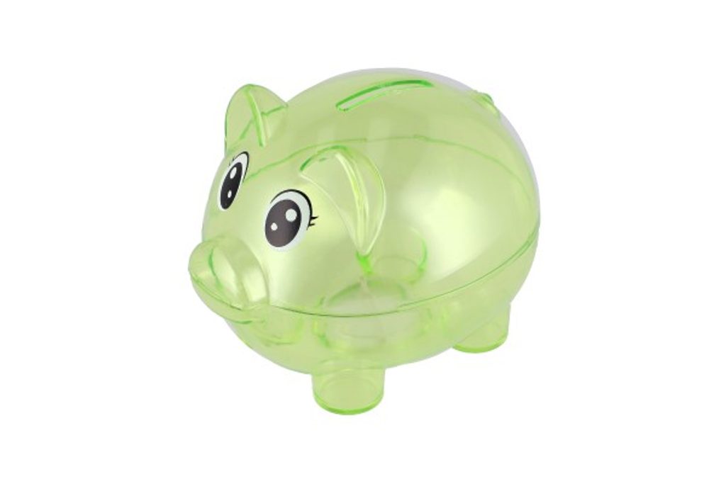 Pokladnička prasátko průhledné plast 10cm mix druhů v krabičce 11x9cm
