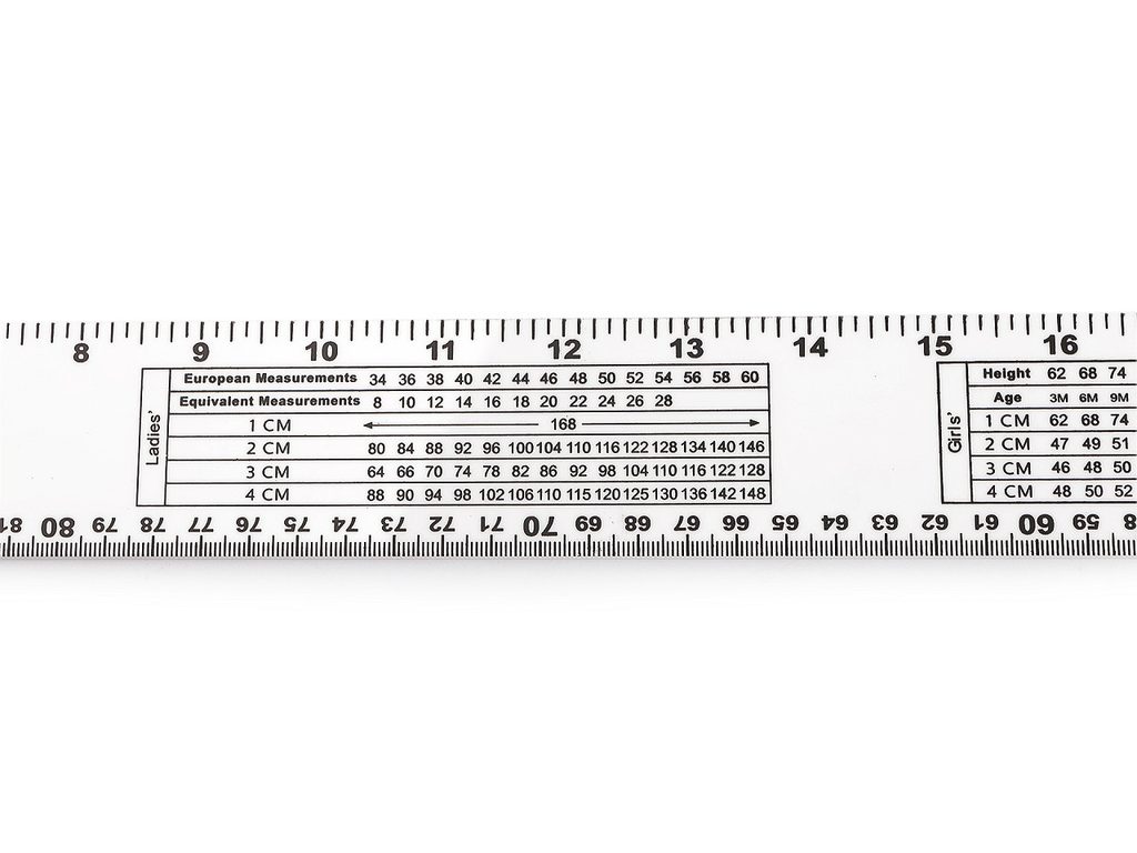 Krejčovský metr / pravítko s velikostními tabulkami délka 100 cm