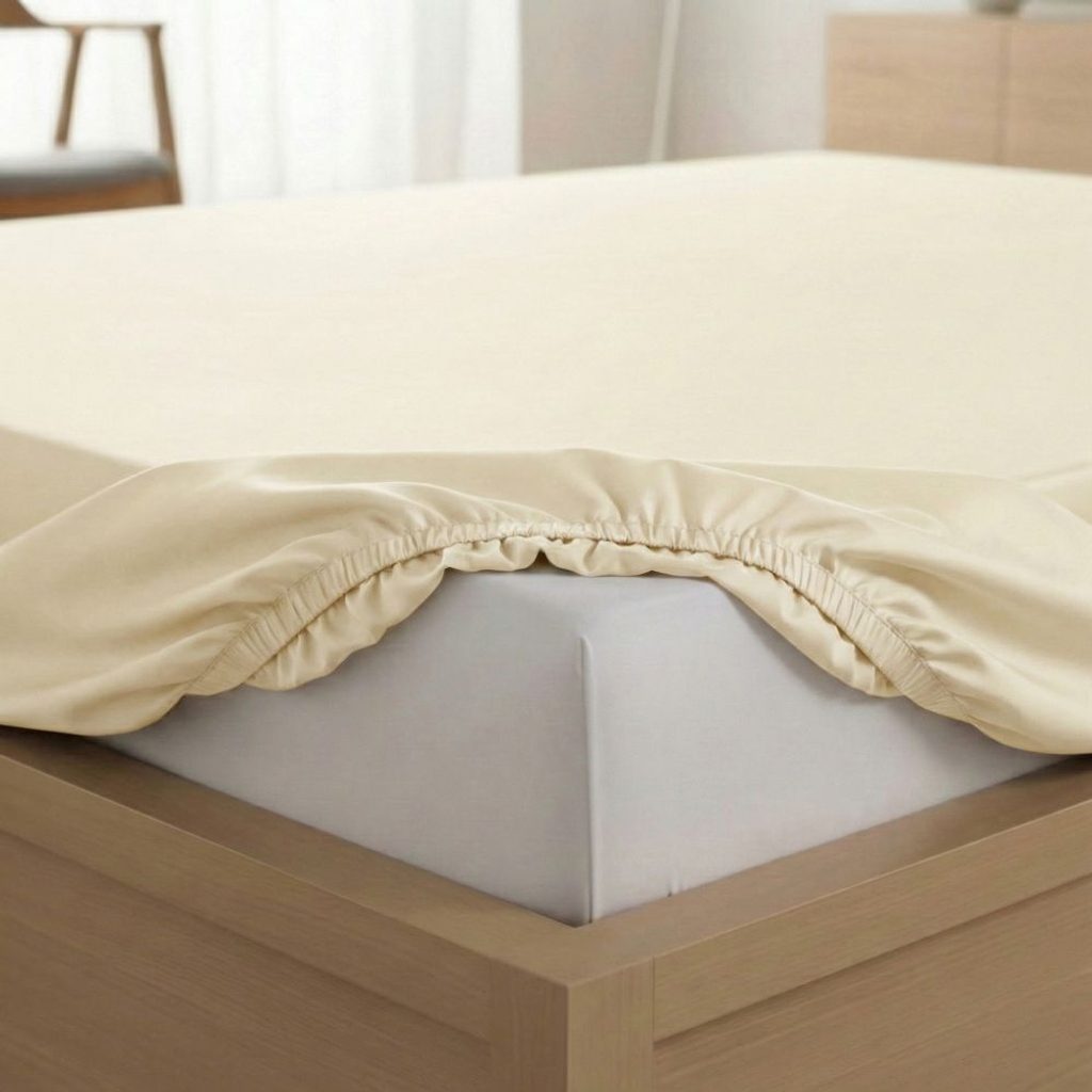 Saténové prostěradlo s gumou smetanové