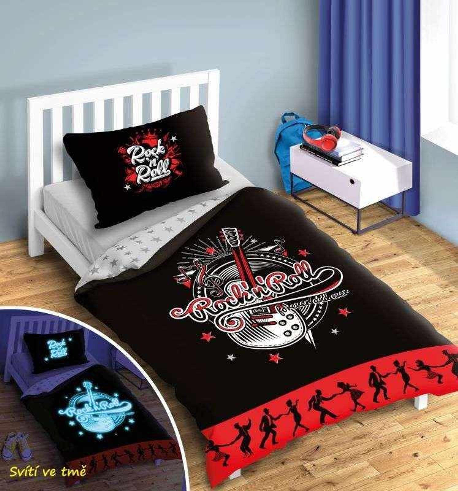 Povlečení Rock and roll svítící Bavlna, 140/200, 70/90 cm