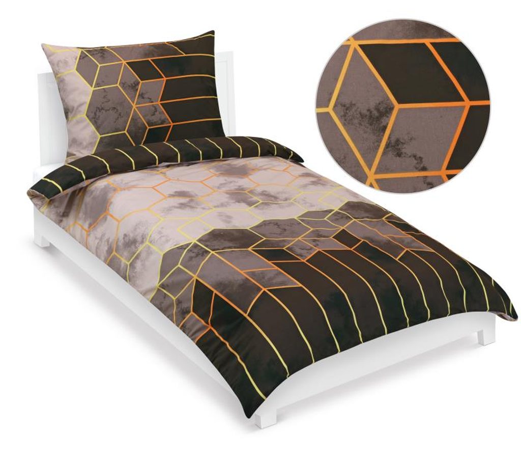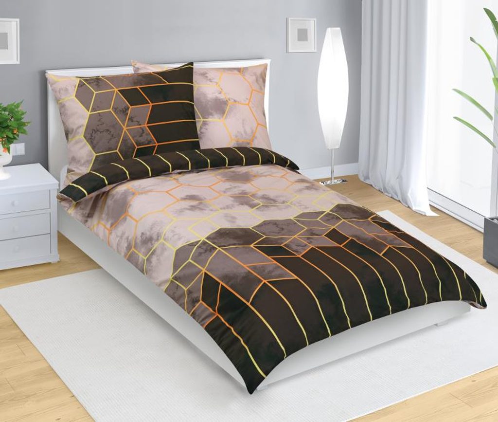 Povlečení bavlněné Oranžová,Šedá,Béžová 90/807
