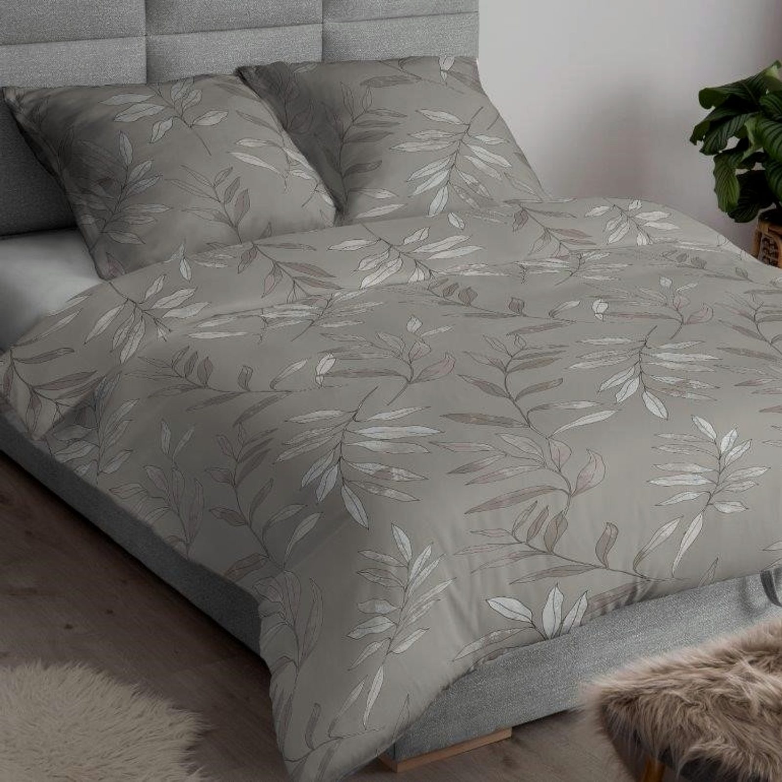 Jemné a hebké povlečení z bavlněného saténu. Moderní a osvědčený materiál vyhledávaný pro svou kvalitu zpracování. Povlečení Samira zdobí šedé listí na šedém podkladu.