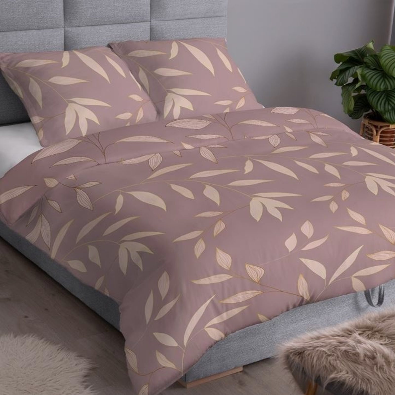 Jemné a hebké povlečení z bavlněného saténu. Moderní a osvědčený materiál vyhledávaný pro svou kvalitu zpracování. Povlečení zdobí lístky se stříbrnými okraji na staro-růžovém podkladu.