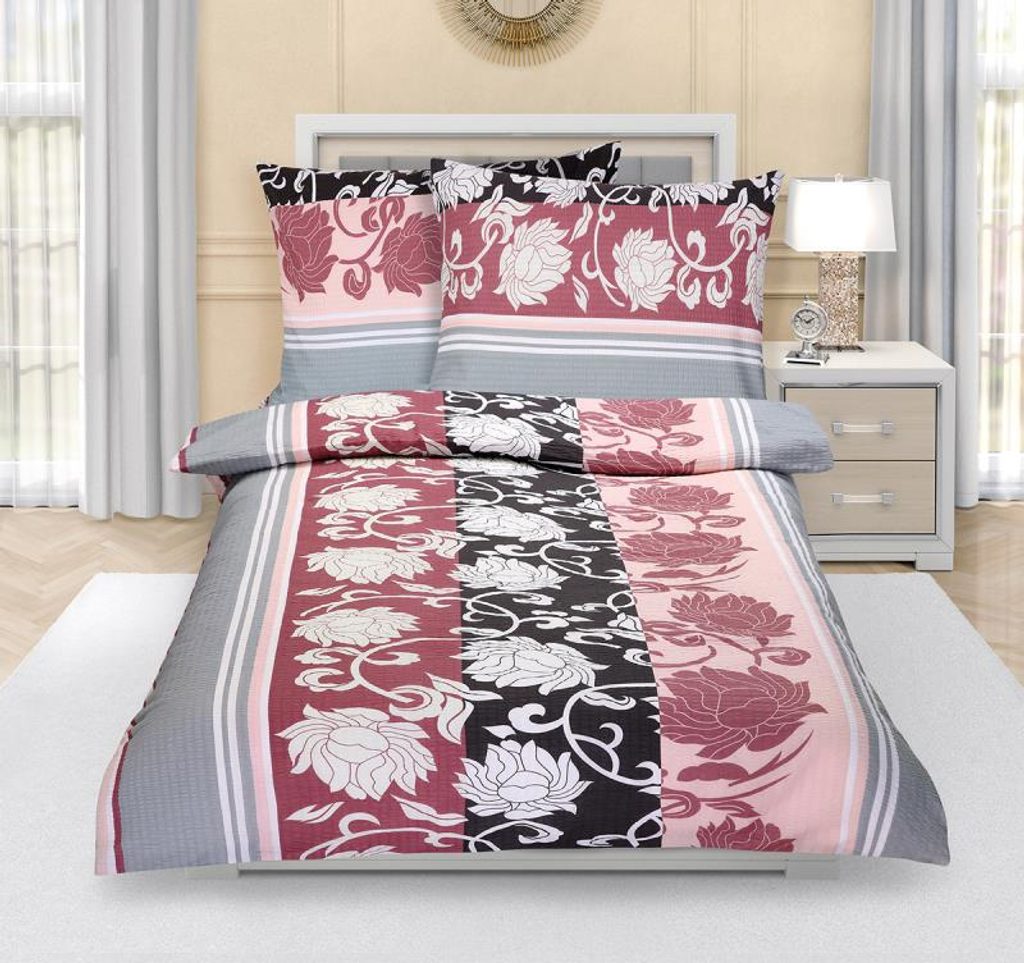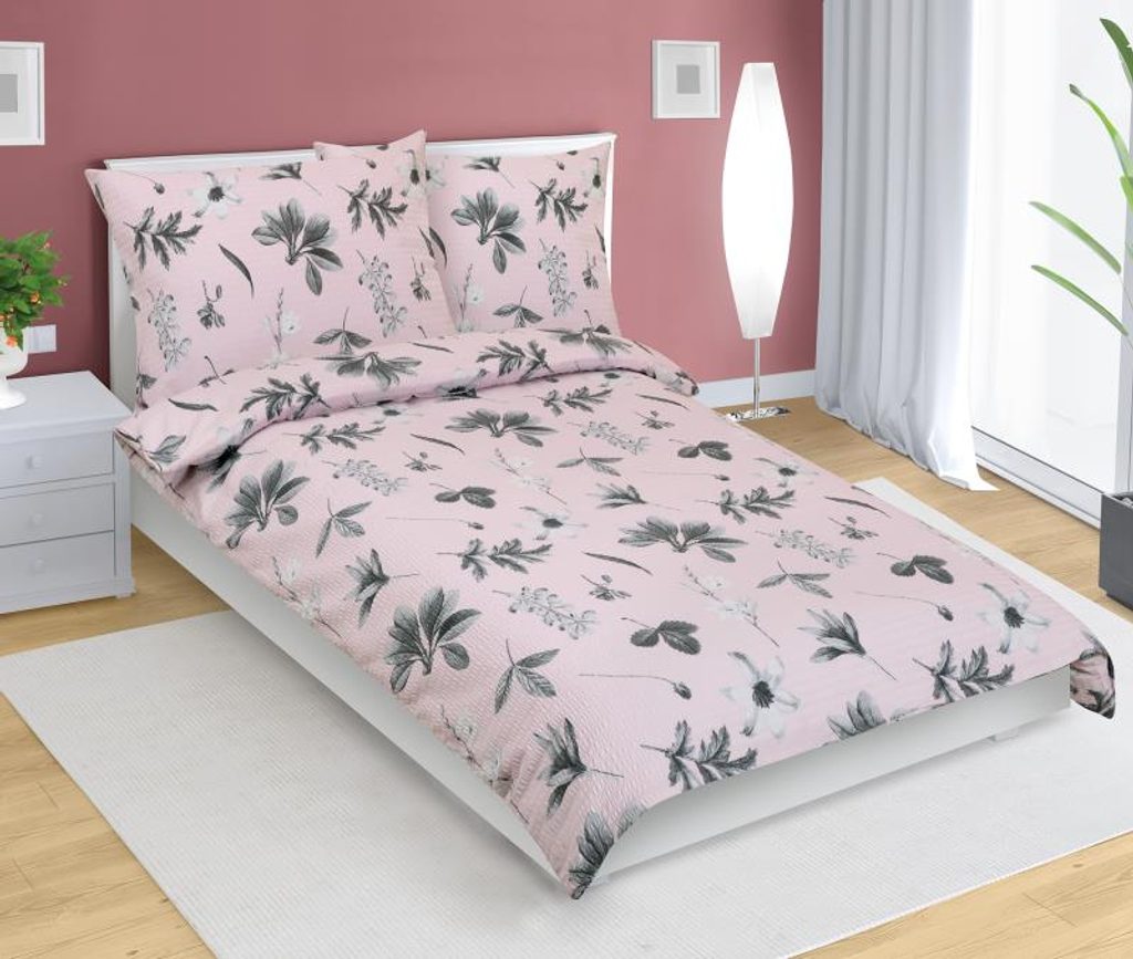 Povlečení krepové Šedá,Růžová 80/949