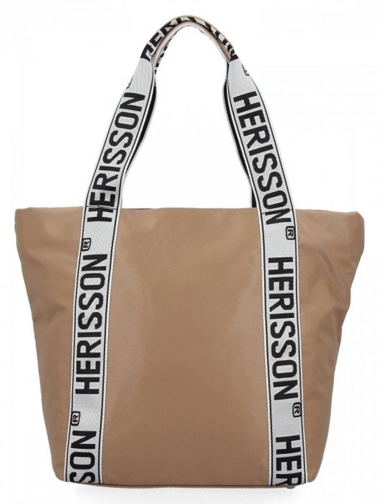 Velká dámská nylonová shopper kabelka přes rameno béžová
