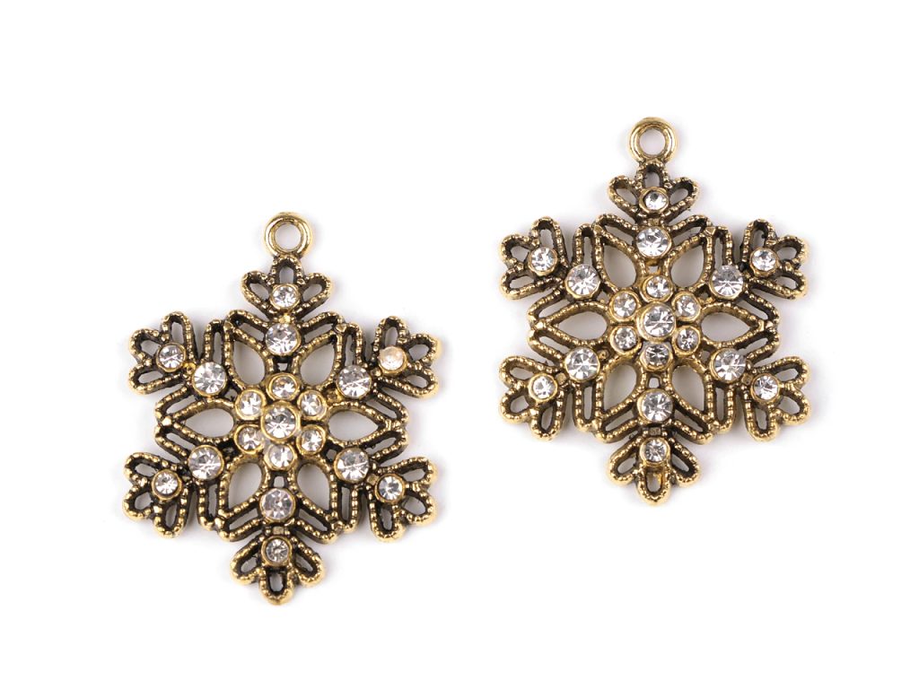 Přívěsek vločka s broušenými kamínky Ø36 mm 2 kusy