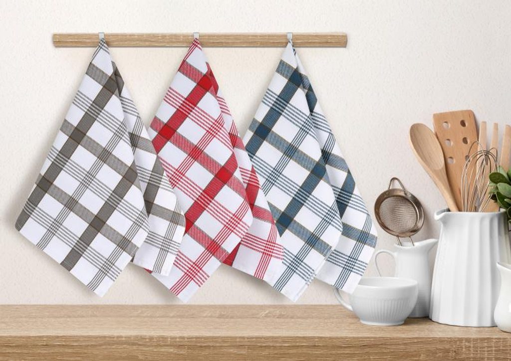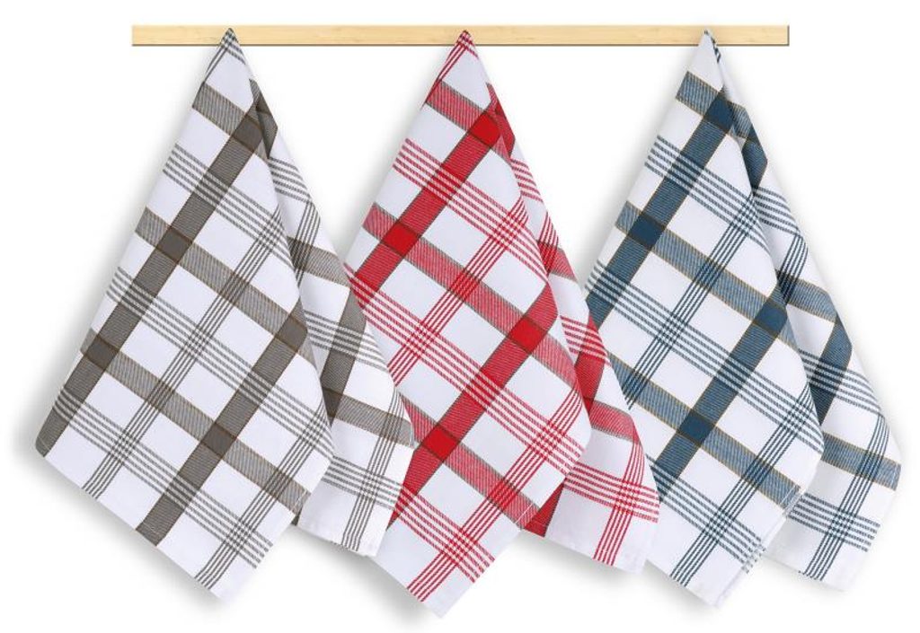 Kuchyňské utěrky - sada 3 kusů - 50x70 cm kostka červená