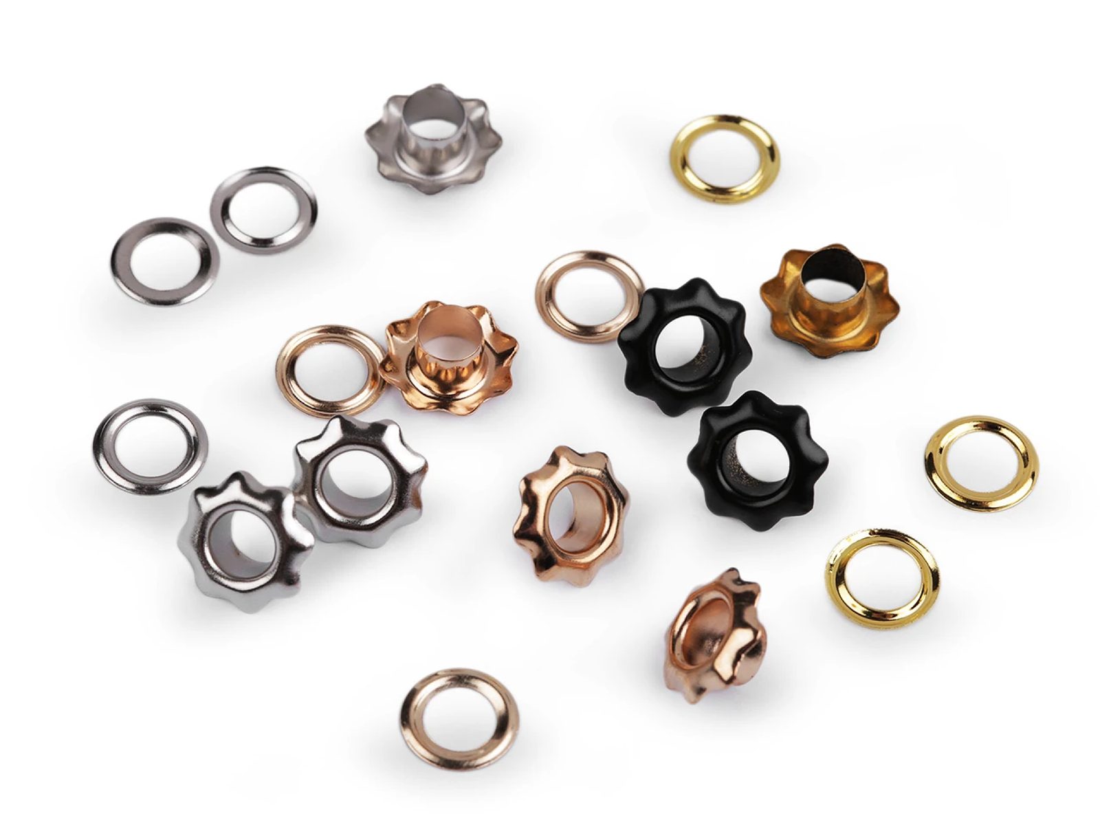 Kovové průchodky svým designem připomínají květ. Nereziví. Ozdobíte s nimi mikiny, šaty, bundy, vesty, batohy i tašky.