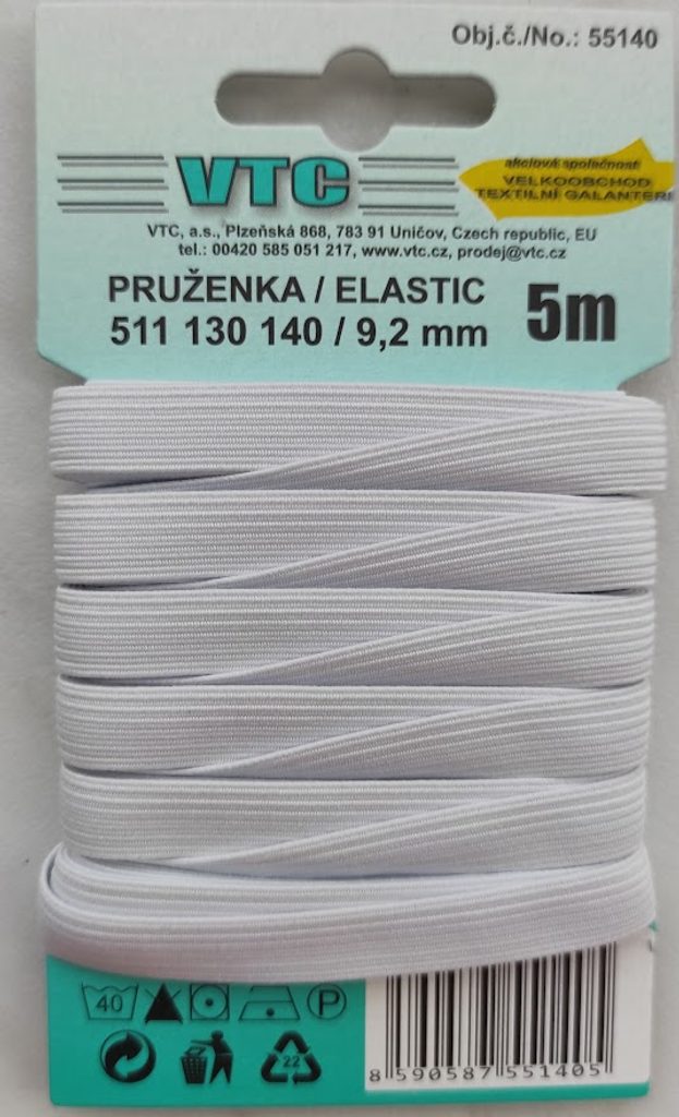 Plochá prádová pruženka v klasické bílé barvě je vyrobena v České republice, aby splnila nároky na pevnost, elasticitu i komfort. Se šíří 9,2 mm a návinem 5 m dodá vašim projektům profesionální vzhled a spolehlivou pružnost při opakovaném nošení a praní