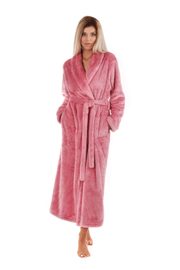 Pudrový huňatý dámský župan s límcem Lilly