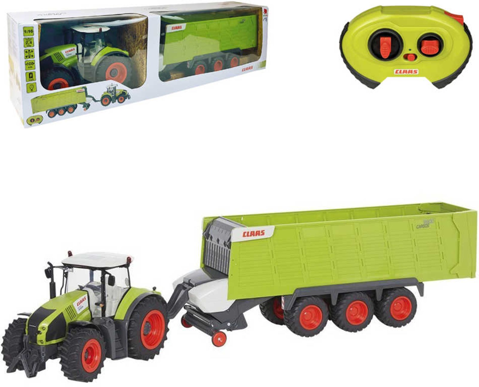 RC traktor Claas Axion + přívěs (2,4 GHz, baterie, světlo)