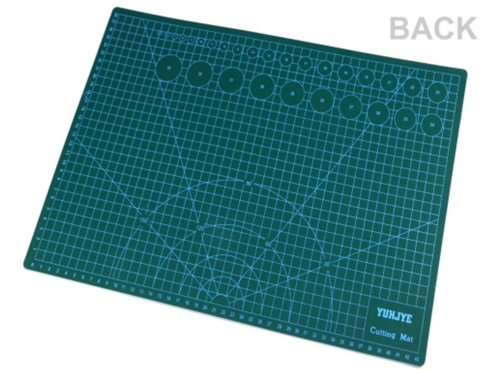 Je oboustranná, vyrobená z tvrdého materiálu, který brání přeříznutí, ale zároveň neztupí čepel nože. Na jedné straně podložky je vyznačena síť v cm s úhly. Také na ní najdete šikovnou vzorkovnici průměrů koleček a čtverečků od 2 mm do 10 mm. Druhá strana je rozměřena po 5 cm. Podkladová barva je tmavě zelená, linie jsou natištěné světle modrou barvou.
