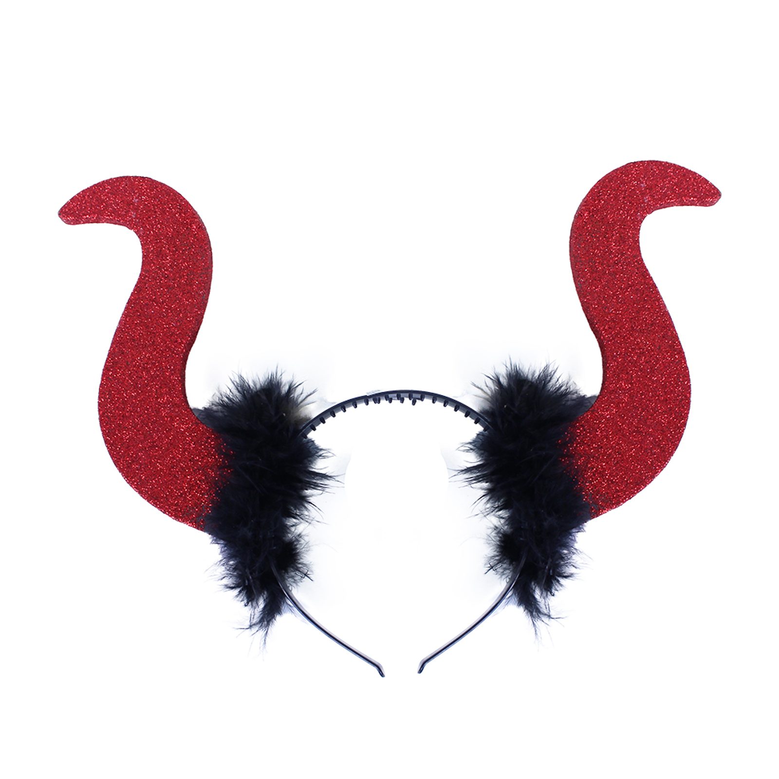 Nepřehlédnutelné třpytivé rohy ďábla/čerta jsou zdobeny hebkým peřím. Tyto stylovky jsou perfektním doplňkem nejen ke kostýmu!