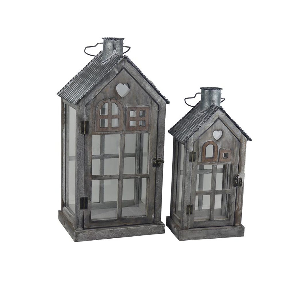 Sada 2 ks dřevěná lucerna, S/2 D7210 - výška 43 cm, 56 cm ▶
