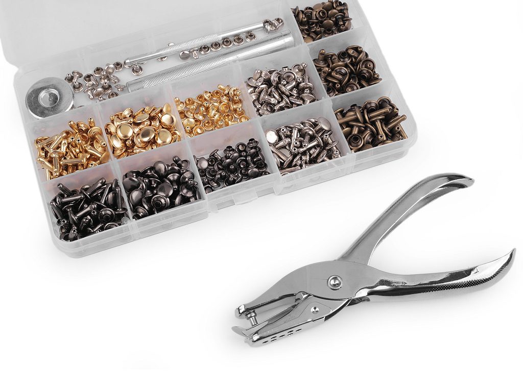 Sada dutých nýtů / kleště / razič v boxu ▶