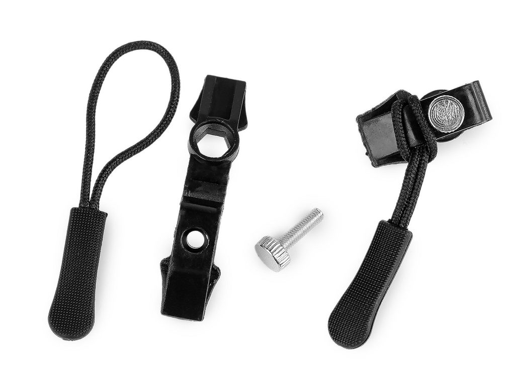 Sada jezdců slouží k rychlé opravě kostěných zipů No 3; 5; 8. Náhradního jezdce rozevřete, nasadíte, zašroubujete a pomalu zapínáte. Provizorně si tak opravíte zip na oblečení i doplňcích.