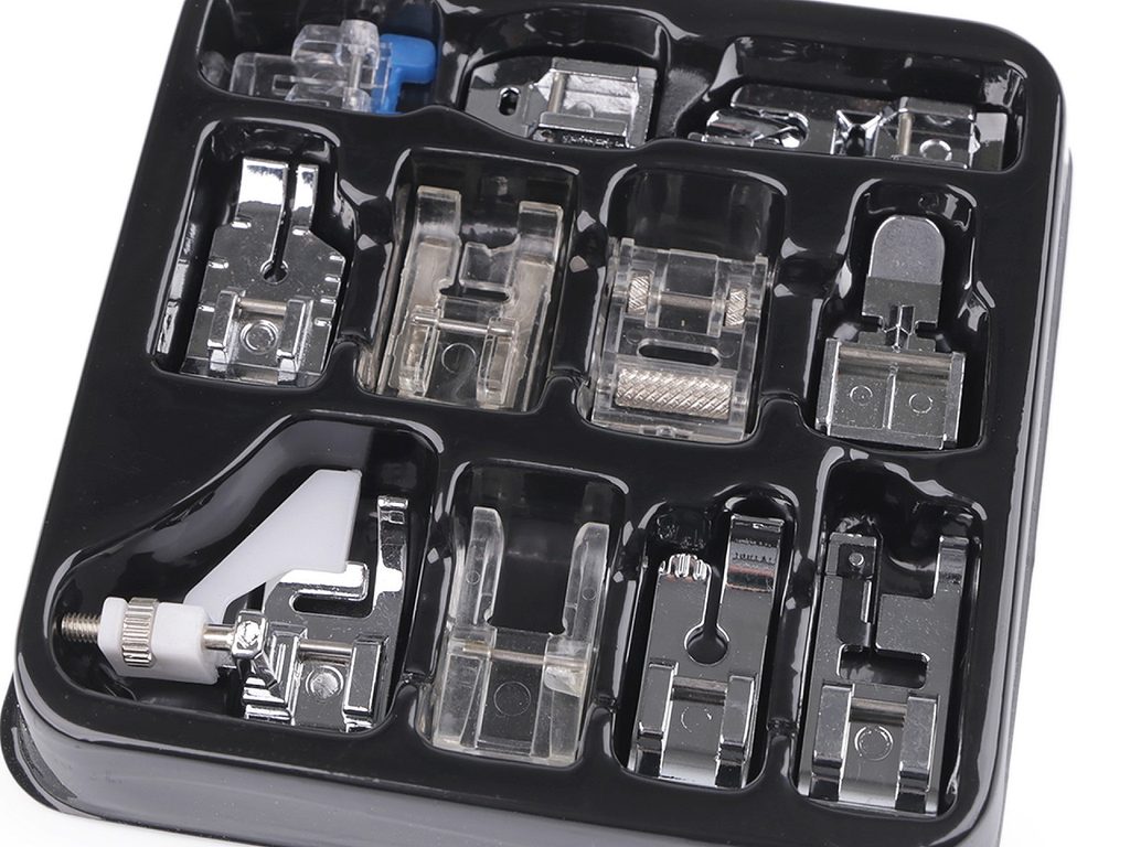 Sada kovových a plastových patek k domácímu šicímu stroji