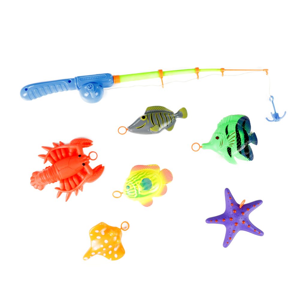 Senzační sada pro malé rybáře! Tento praktický set obsahuje 1 prut s navijákem a háčkem a 6 pestrobarevných rybiček s kroužky u úst. Vlož rybičky do vody, připrav si prut a můžeš začít s opravdovým rybařením. Díky pevnému navijáku pro tebe ani velká ryba nebude žádný problém!