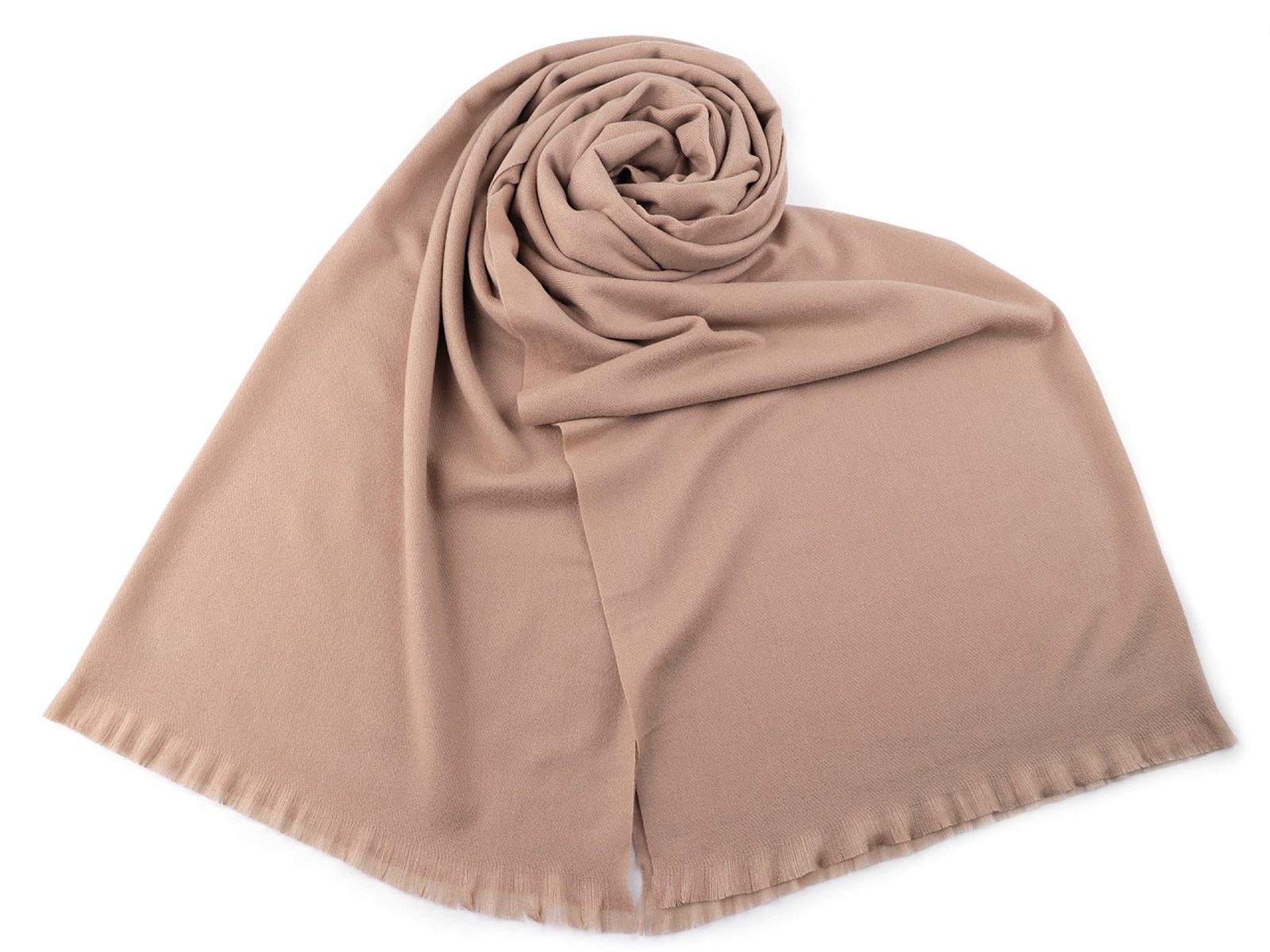 Velká jednobarevná šála vás komfortně zahřeje v sychravých dnech. Je vyrobená z příjemně hebkého a jemného materiálu. Na koncích je zakončená krátkými třásněmi.