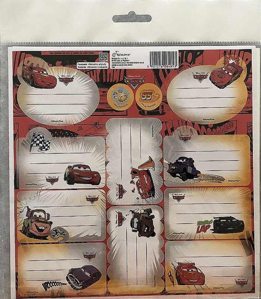 Samolepící jmenovky Cars Papír, 20x20 cm ▶