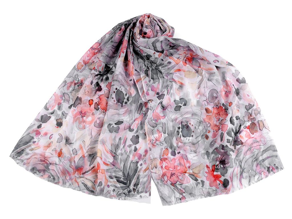 Letní šátek / šála s třásněmi velké květy 70x180 cm