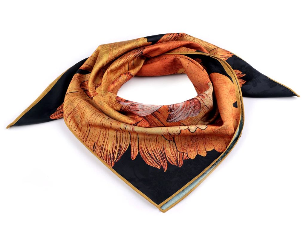 Saténový šátek s potiskem je velice kvalitní, elgantní, využijete jej na každodenní nošení. Jeho příjemný materiál vás bude doslova hýčkat, připomíná hedvábí. Můžete ho uvázat do slušivého uzlu, který podtrhne dokonalost vašeho oděvu.
