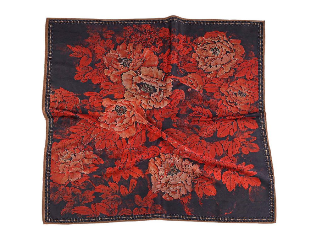 Velký saténový šátek s motivem větviček a květů využijete na každodenní nošení. Je lehounký a měkký, doslova vás bude hýčkat, protože na dotek připomíná hedvábí. Šátek můžete uvázat do slušivého uzlu, který podtrhne eleganci vašeho oděvu. Šátek je jednostranný.