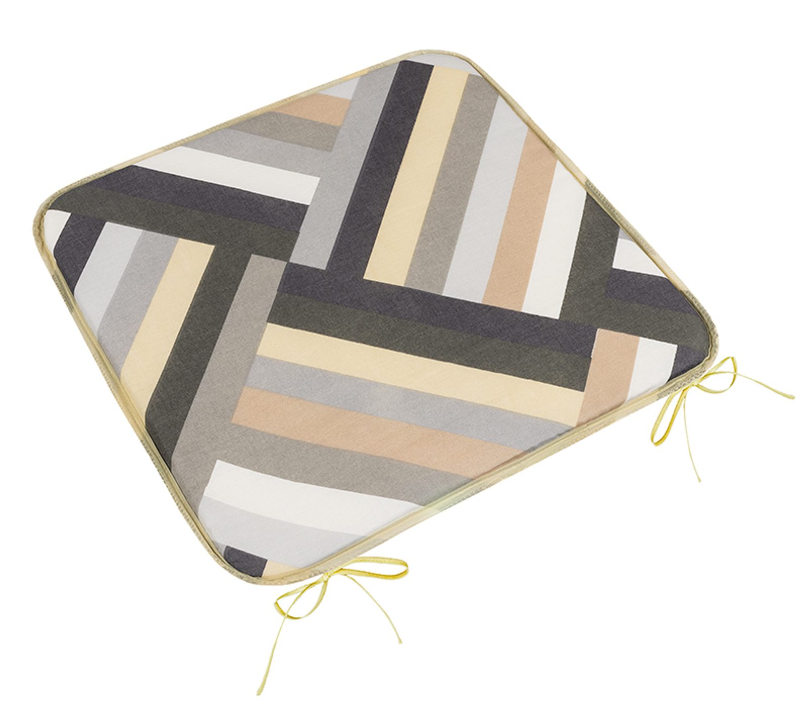 Sedák 40x40cm výška 2cm se šňůrkami na zavazování. Vrchní materiál je velice kvalitní a odolný vůči poškození. Sedák je na čtyřech místech prošitý okrasným stehem proti pohybu vnitřní výplně. Praní na 30°C v automatické pračce.