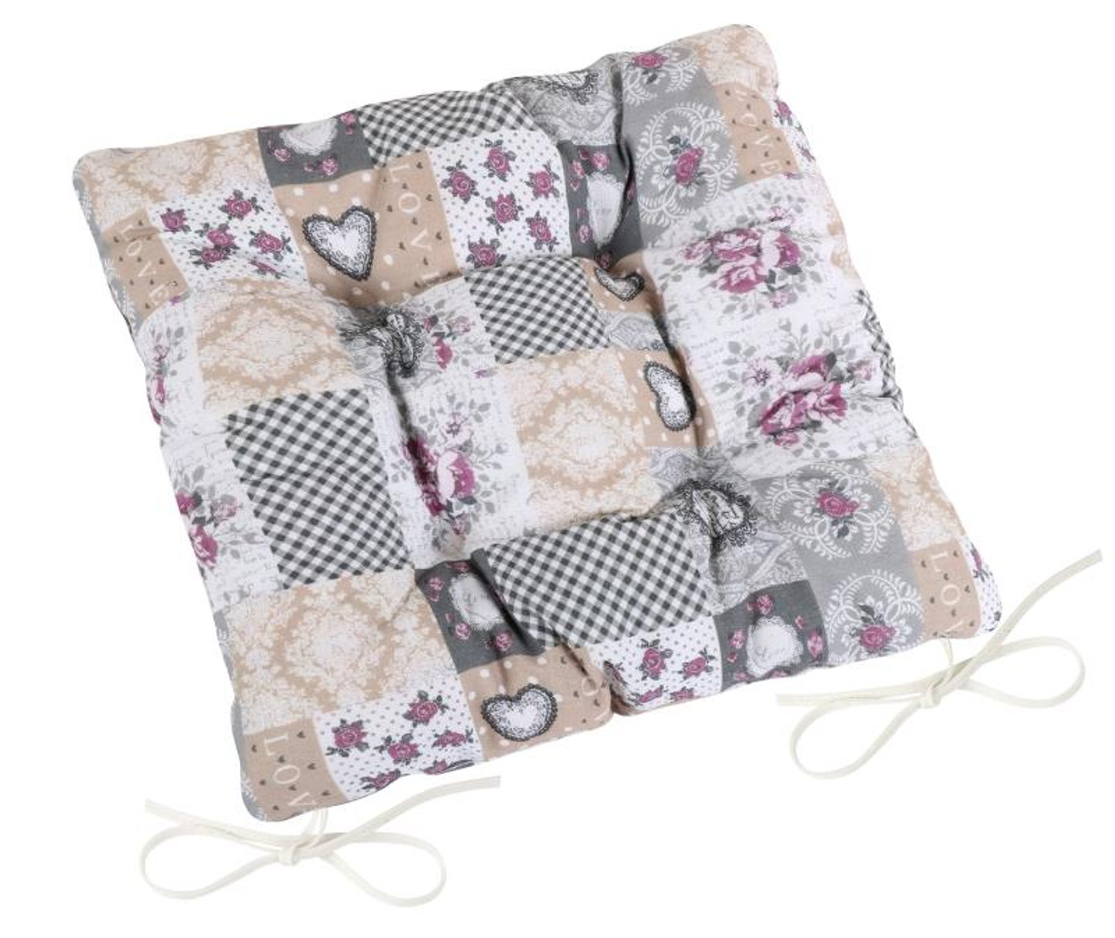 Sedák DITA prošívaný Patchwork LOVE – 40 × 40 cm, šedý