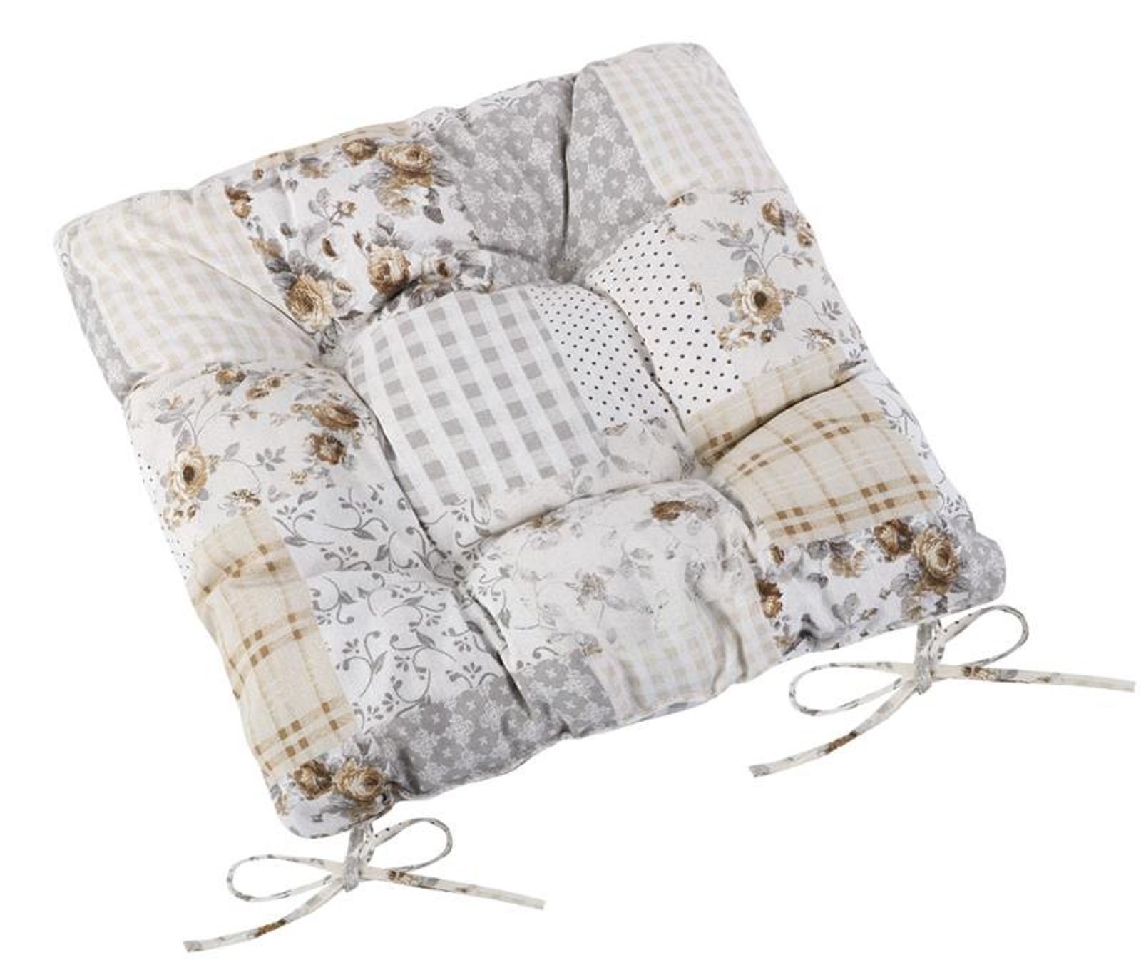 Sedák EMA prošívaný - 40 x40 cm, prošívaný béžovošedý patchwork