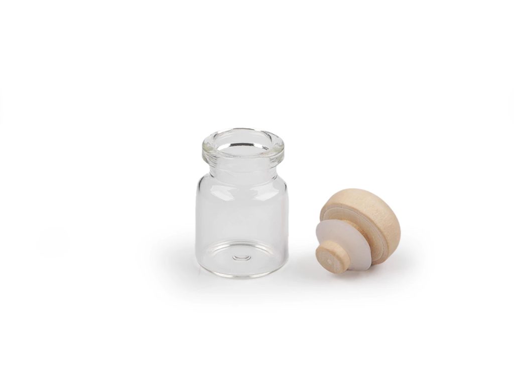Skleněná lahvička s dřevěnou zátkou 12 kusů ▶