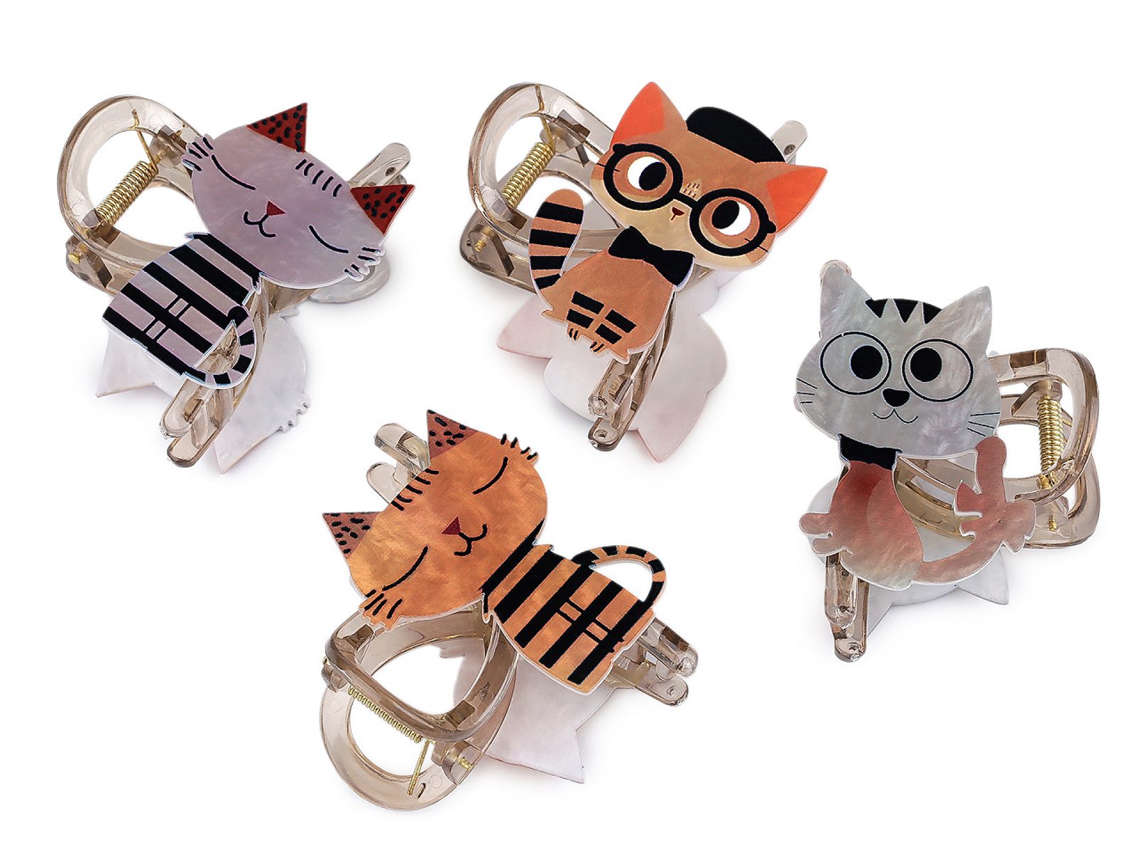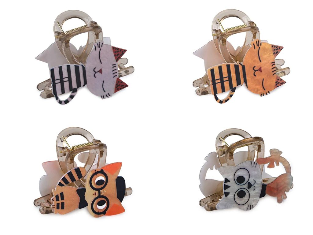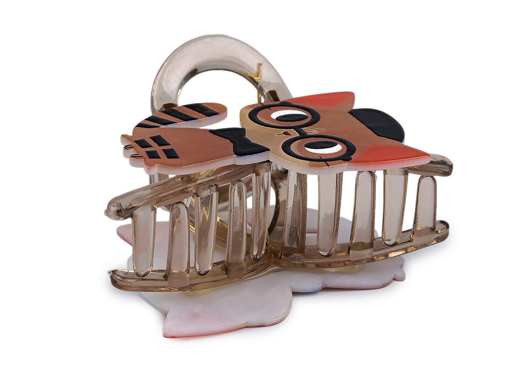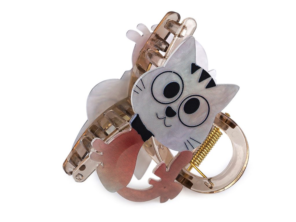 Skřipec ve tvaru kočky dodá vašemu účesu zábavný hravý styl. Je skvělým dárkem pro každou malou slečnu a pro milovnice kočičích mazlíčků. Má potisk s jemným perleťovým nádechem. Dá se použít k jednoduchému sepnutí vlasů na doma, v práci či na volný čas, ale také k vytvoření elegantnějšího účesu na večírek. Poutavý účes vytvoří během chvilky. Skřipec díky svému silnému stisku a dlouhým zubům přesně drží na místě.