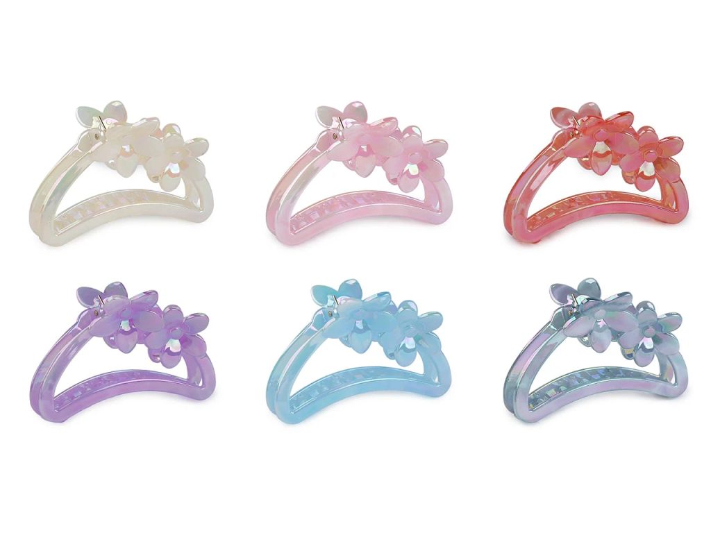 Skřipec do vlasů s květy je elegantním doplňkem, který dodá vašemu účesu romantický vzhled. Na první pohled zaujme svým zajímavým zpracováním s perleťovým AB efektem. Skřipec vykouzlí poutavý účes během chvilky. Ocení jej dívky a ženy, které nemají rády gumičky. Drží přesně na místě díky svému silnému stisku a dlouhým zubům.