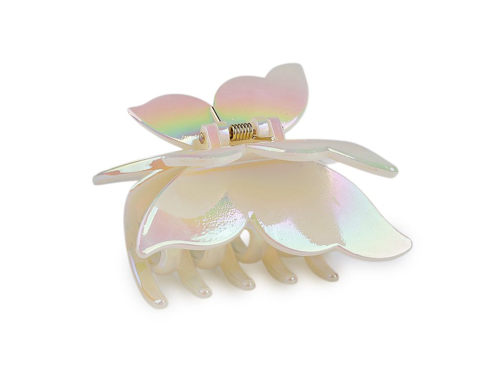 Skřipec do vlasů ve tvaru motýla je elegantním doplňkem, který dodá vašemu účesu romantický vzhled. Na první pohled zaujme svým zajímavým zpracováním s perleťovým AB efektem. Skřipec vykouzlí poutavý účes během chvilky. Ocení jej dívky a ženy, které nemají rády gumičky. Drží přesně na místě díky svému silnému stisku a dlouhým zubům.