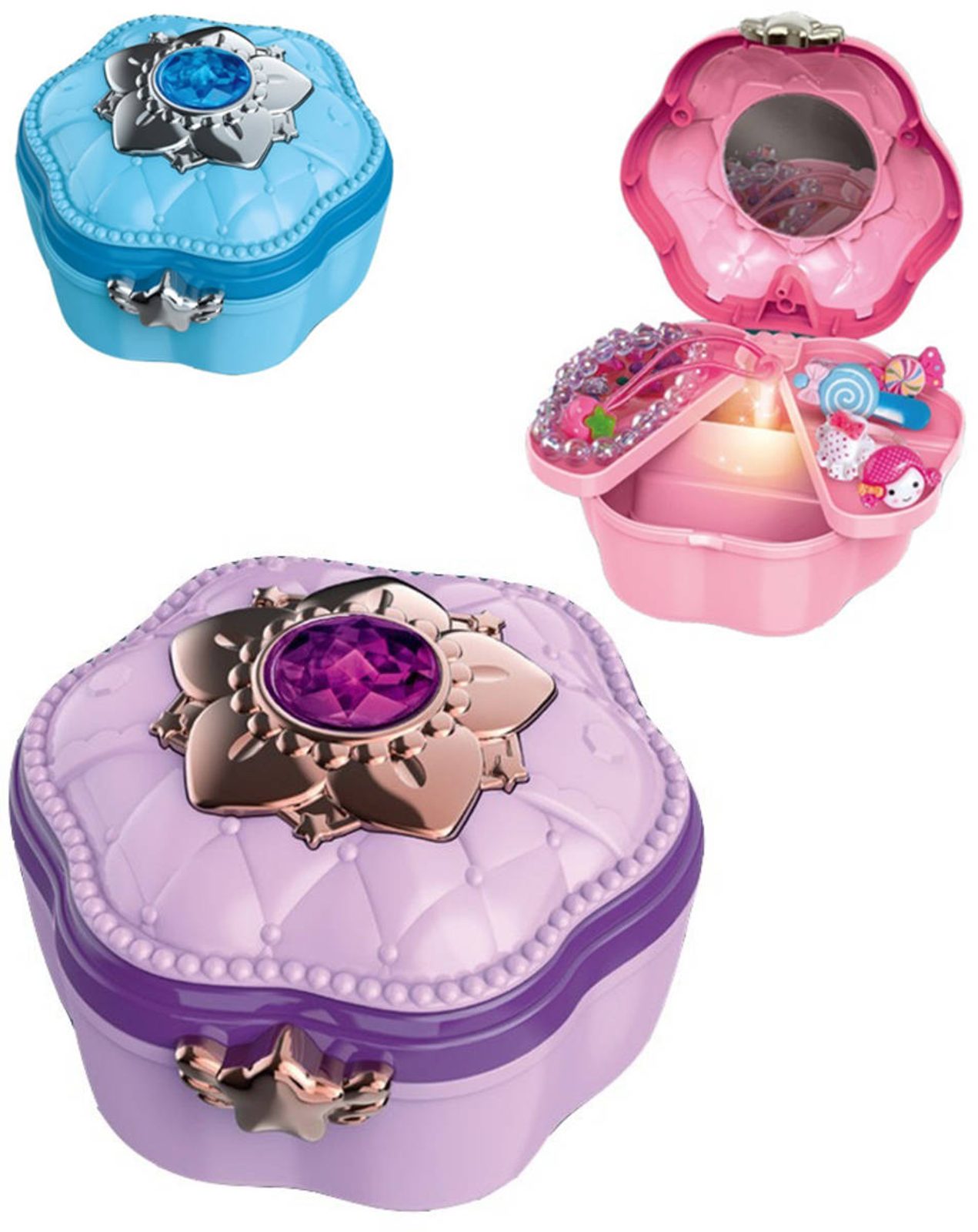 Šperkovnice dětská set s kadeřnickými doplňky na baterie Světlo Zvuk 3 barvy